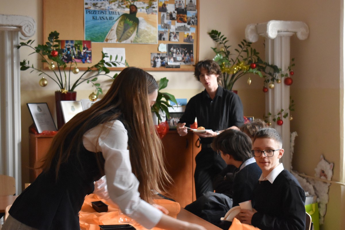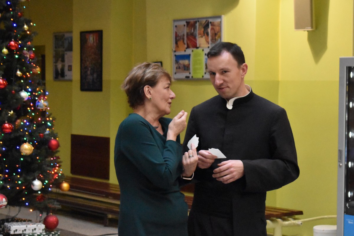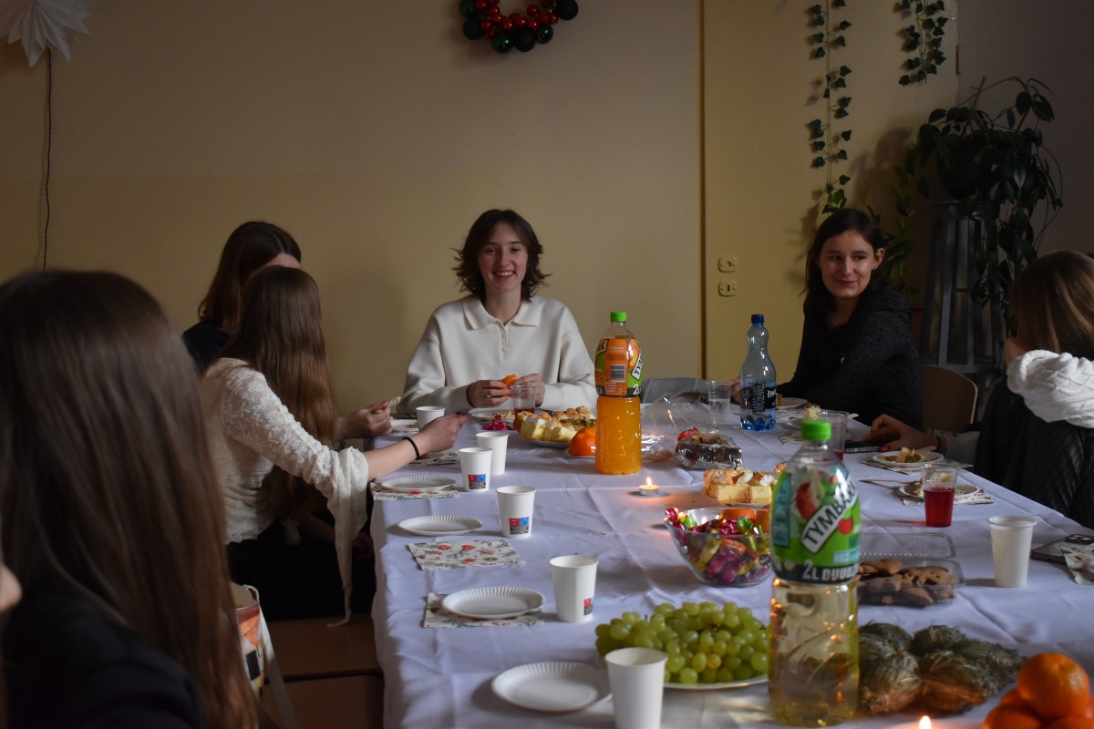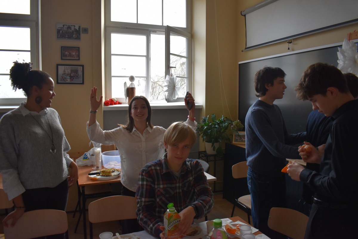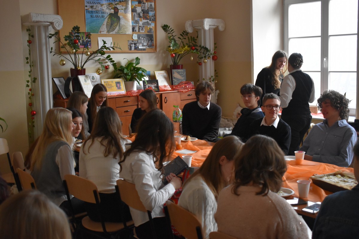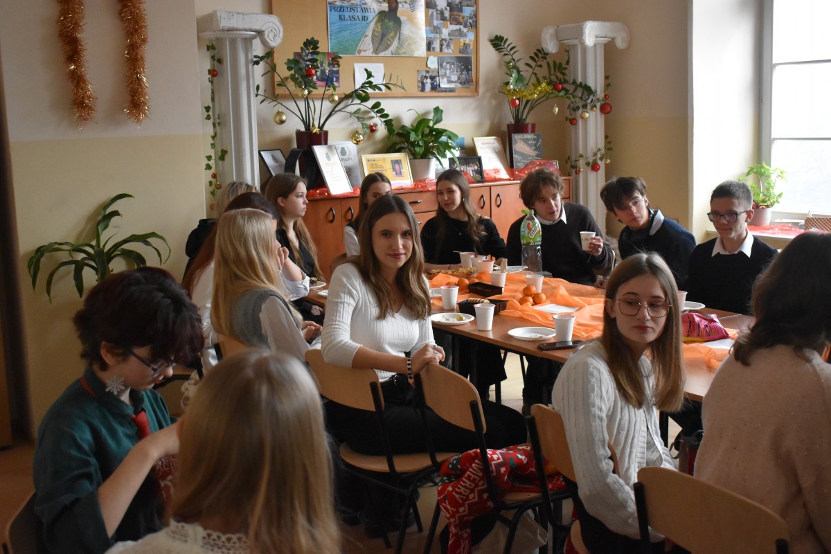 …a jak już się podzieliliśmy miłością z osobami starszymi i samotnymi, to nadszedł czas – w przeddzień rozpoczęcia baaardzo długiej przerwy świątecznej – na dzielenie między sobą: w całej społeczności Liceum, w klasach, między klasami, w gronie nauczycieli. Na dzielenie wszystkim, co dobre: życzeniami, opłatkiem, dobrym słowem, czasem prezentami.