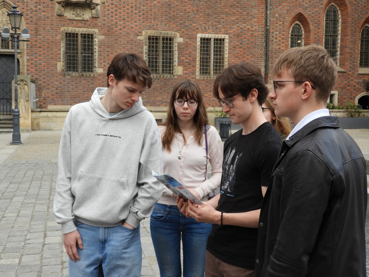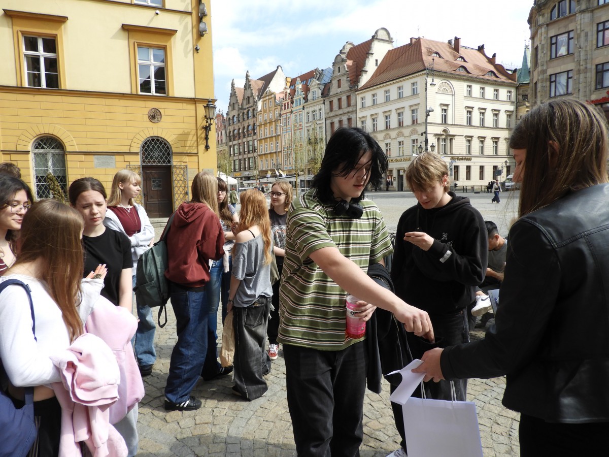 Wczesnym czwartkowym rankiem wyruszyliśmy pociągiem do malowniczego Wrocławia, który już pierwszego dnia mieliśmy okazję lepiej poznać dzięki wizycie w Kolejkowie, gdzie oglądaliśmy miniaturową wersję wszystkiego, co to miasto miało nam do zaoferowania. Byliśmy także świadkami zwycięskiej bitwy pod Racławicami, a następnie przeprawiliśmy się Polinką (kolejką gondolową) na drugą stronę Odry - do Hydropolis. Dowiedzieliśmy się tam, jak z wody powstała nasza planeta, jak badane są głębiny oceanów oraz jak i gdzie gromadzi się mikroplastik. Wieczorem zwiedzaliśmy Wrocław w jego innej odsłonie. Następnego dnia, wyspani i pełni zapału, wygraliśmy grę miejską, licząc nie tylko stragany. Odwiedziliśmy również zoo, gdzie spotkaliśmy kozy, rekiny, pingwiny, tygrysy i surykatki, które niemal przygarnęły nas do swojej rodziny, a także pawiany, które niechętnie odwróciły się do nas plecami. A to wszystko przetrwaliśmy, potykając się co chwilę o małe, fikuśne, żelazne krasnale.