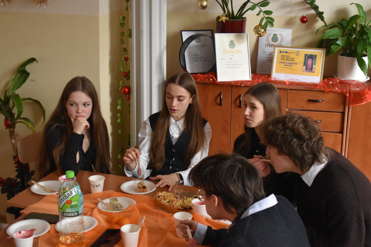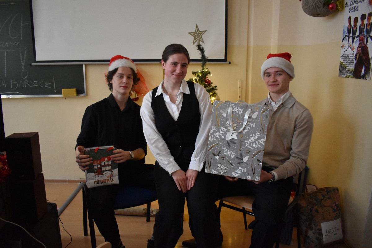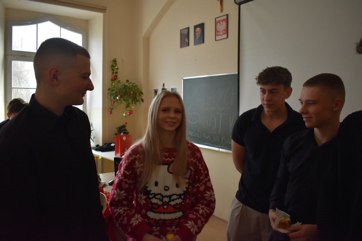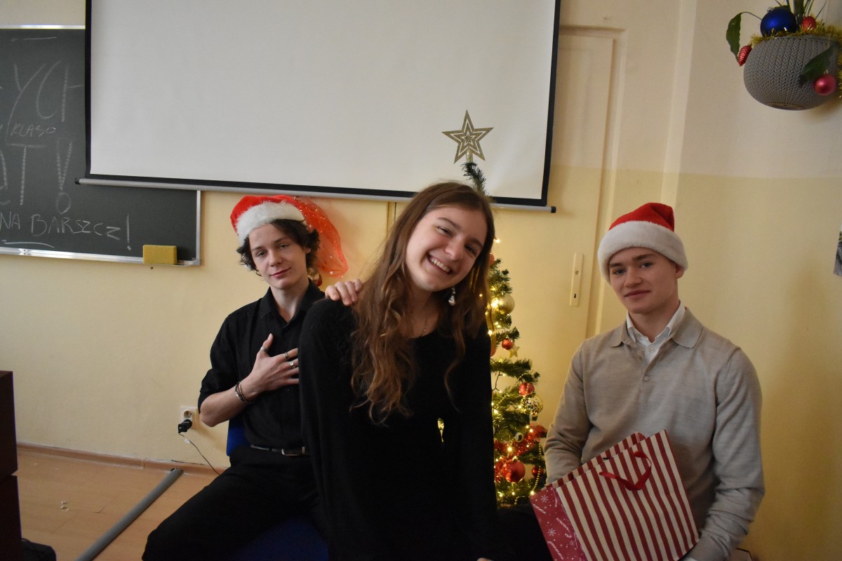 …a jak już się podzieliliśmy miłością z osobami starszymi i samotnymi, to nadszedł czas – w przeddzień rozpoczęcia baaardzo długiej przerwy świątecznej – na dzielenie między sobą: w całej społeczności Liceum, w klasach, między klasami, w gronie nauczycieli. Na dzielenie wszystkim, co dobre: życzeniami, opłatkiem, dobrym słowem, czasem prezentami.