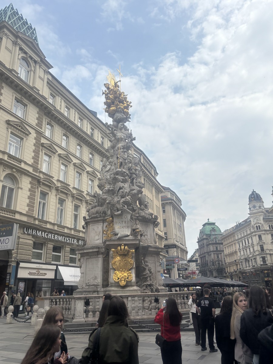 Trzeciego dnia naszej wycieczki mieliśmy okazję zobaczyć zachwycający Belweder, czyli barokowy kompleks pierwotnie będący letnią rezydencją księcia Eugeniusza Sabaudzkiego, składający się z oszałamiających ogrodów i dwóch budynków - Dolnego i Górnego Belwederu. W tym drugim obecnie znajduje się galeria sztuki, w której mogliśmy podziwiać obrazy wybitnych malarzy takich jak Gustaw Klimt czy Egon Schiele. Następnie udaliśmy się do Muzeum Historii Sztuki, znajdującego się w pięknym, bliźniaczym budynku Muzeum Historii Naturalnej, gdzie mogliśmy podziwiać bogate zbiory cesarskiej rodziny Habsburgów, obejmujące takie arcydzieła jak malowidła naścienne pochodzące ze starożytnego Egiptu, rzeźby stworzone przez artystów antycznych Grecji i Rzymu oraz niesamowite przykłady twórczości Pietera Bruegla starszego, Rafaela czy Caravaggia.