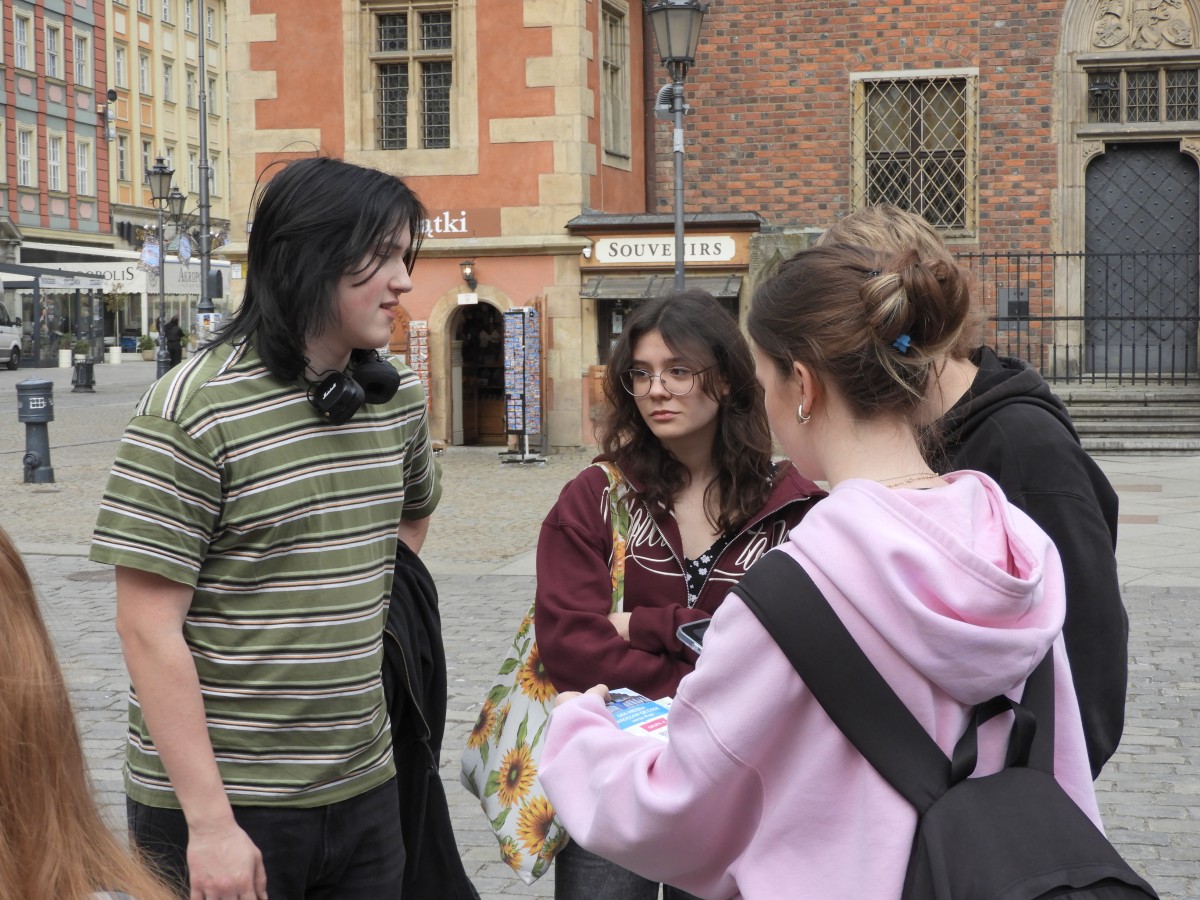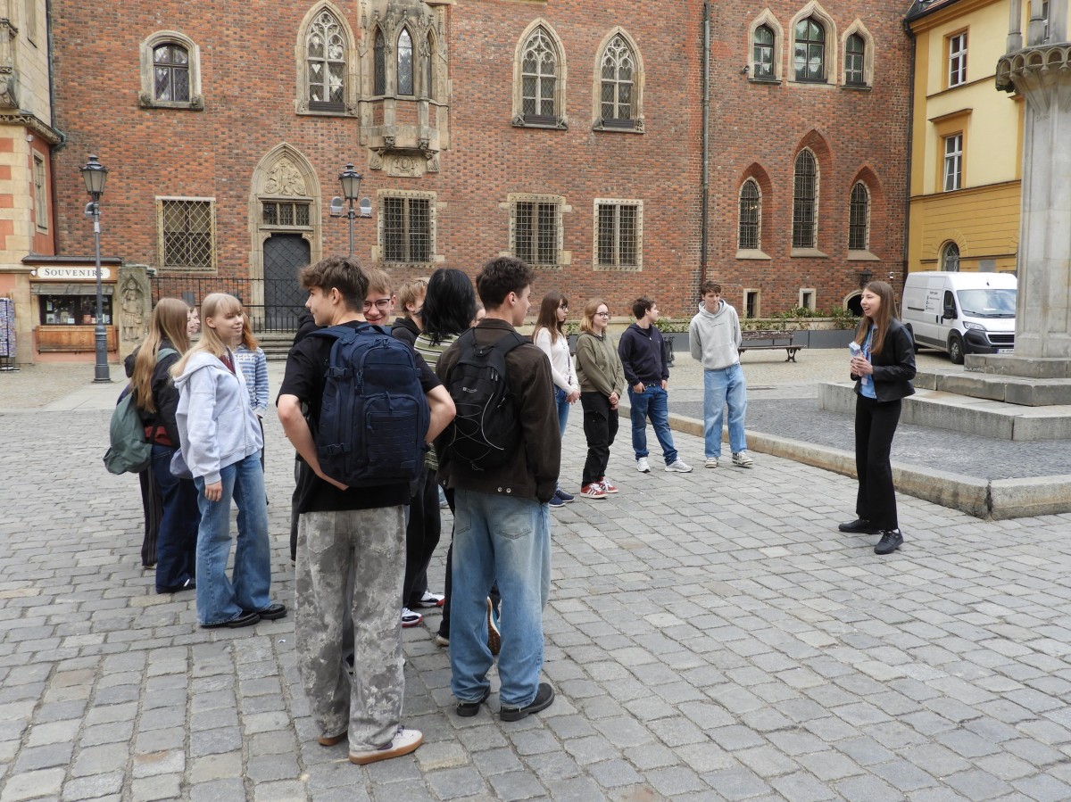 Wczesnym czwartkowym rankiem wyruszyliśmy pociągiem do malowniczego Wrocławia, który już pierwszego dnia mieliśmy okazję lepiej poznać dzięki wizycie w Kolejkowie, gdzie oglądaliśmy miniaturową wersję wszystkiego, co to miasto miało nam do zaoferowania. Byliśmy także świadkami zwycięskiej bitwy pod Racławicami, a następnie przeprawiliśmy się Polinką (kolejką gondolową) na drugą stronę Odry - do Hydropolis. Dowiedzieliśmy się tam, jak z wody powstała nasza planeta, jak badane są głębiny oceanów oraz jak i gdzie gromadzi się mikroplastik. Wieczorem zwiedzaliśmy Wrocław w jego innej odsłonie. Następnego dnia, wyspani i pełni zapału, wygraliśmy grę miejską, licząc nie tylko stragany. Odwiedziliśmy również zoo, gdzie spotkaliśmy kozy, rekiny, pingwiny, tygrysy i surykatki, które niemal przygarnęły nas do swojej rodziny, a także pawiany, które niechętnie odwróciły się do nas plecami. A to wszystko przetrwaliśmy, potykając się co chwilę o małe, fikuśne, żelazne krasnale.